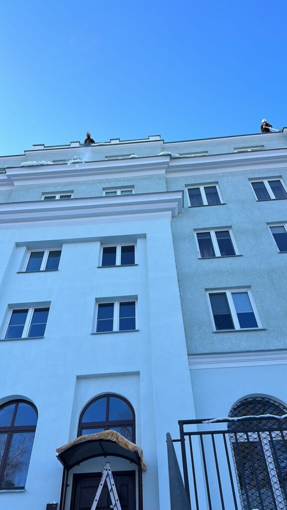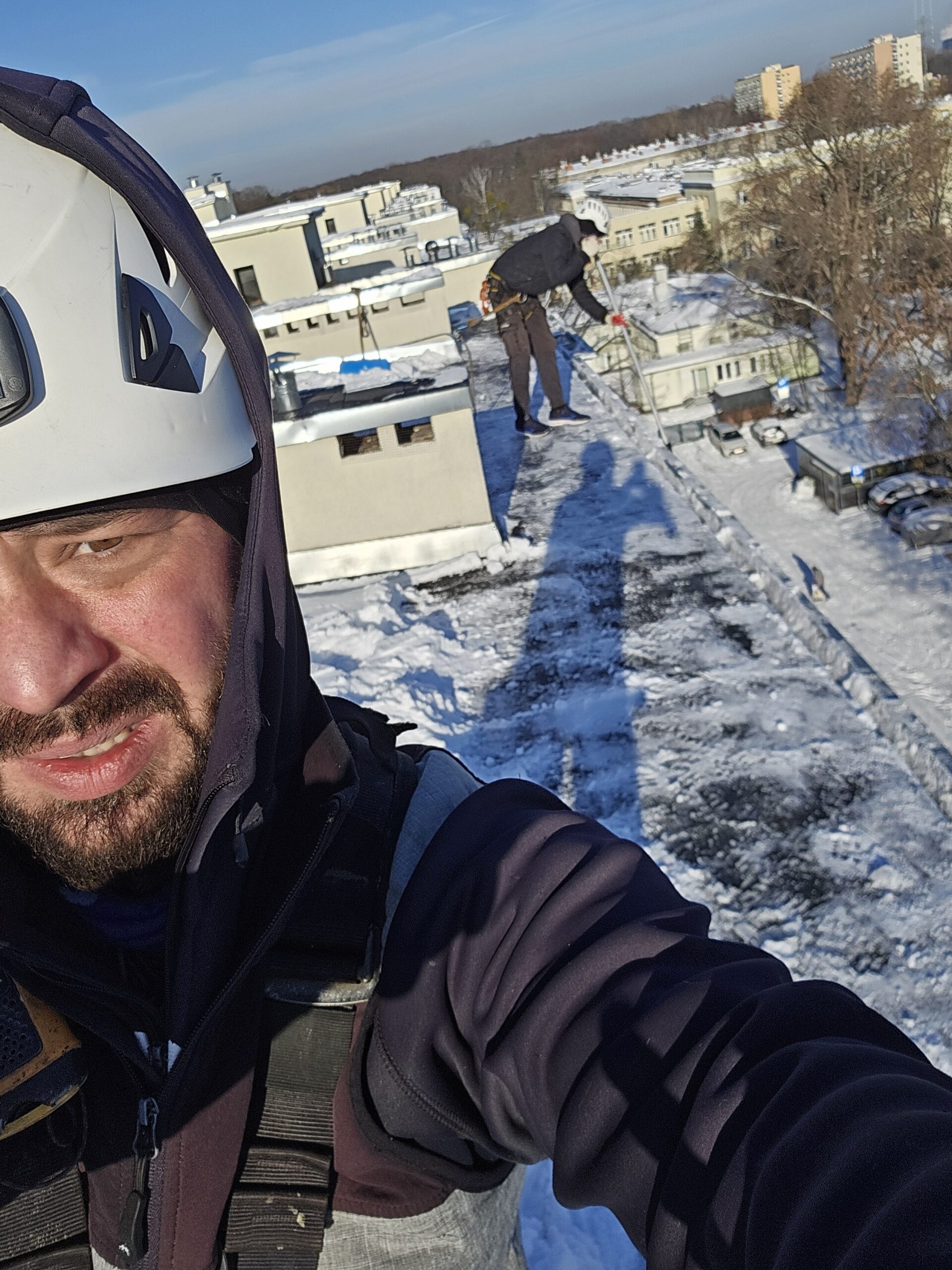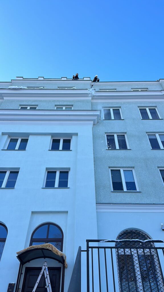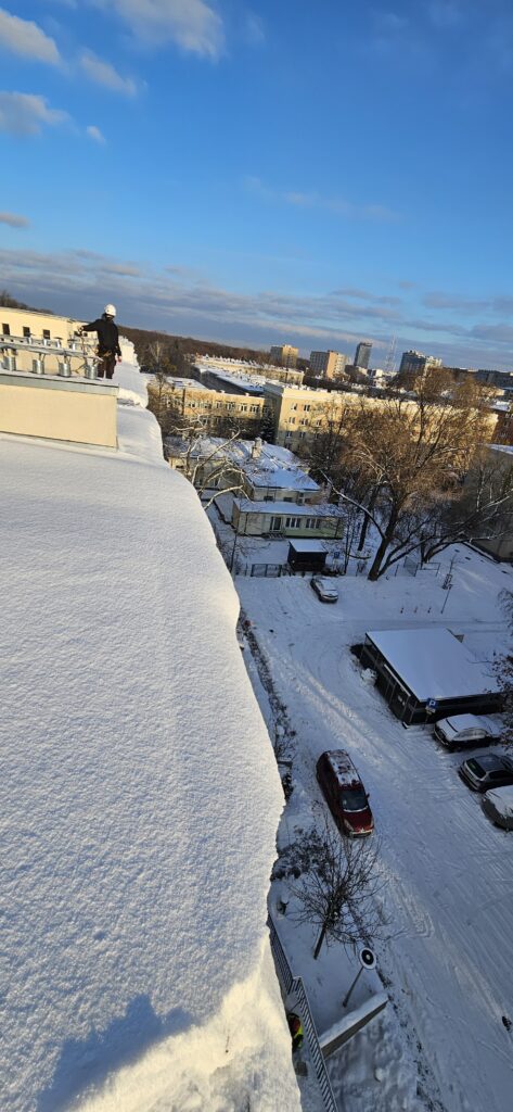 Odśnieżanie dachu ul. Leszno 32, Wola